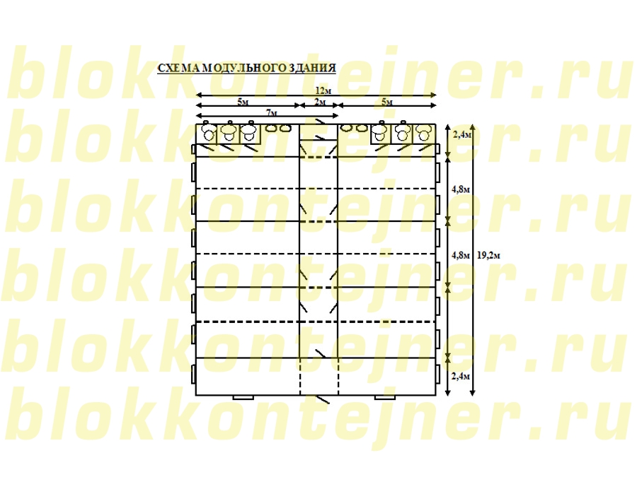 Модульное здание – 19,2*12,0*2,5м  состоит  из 16-ти блок-контейнеров: